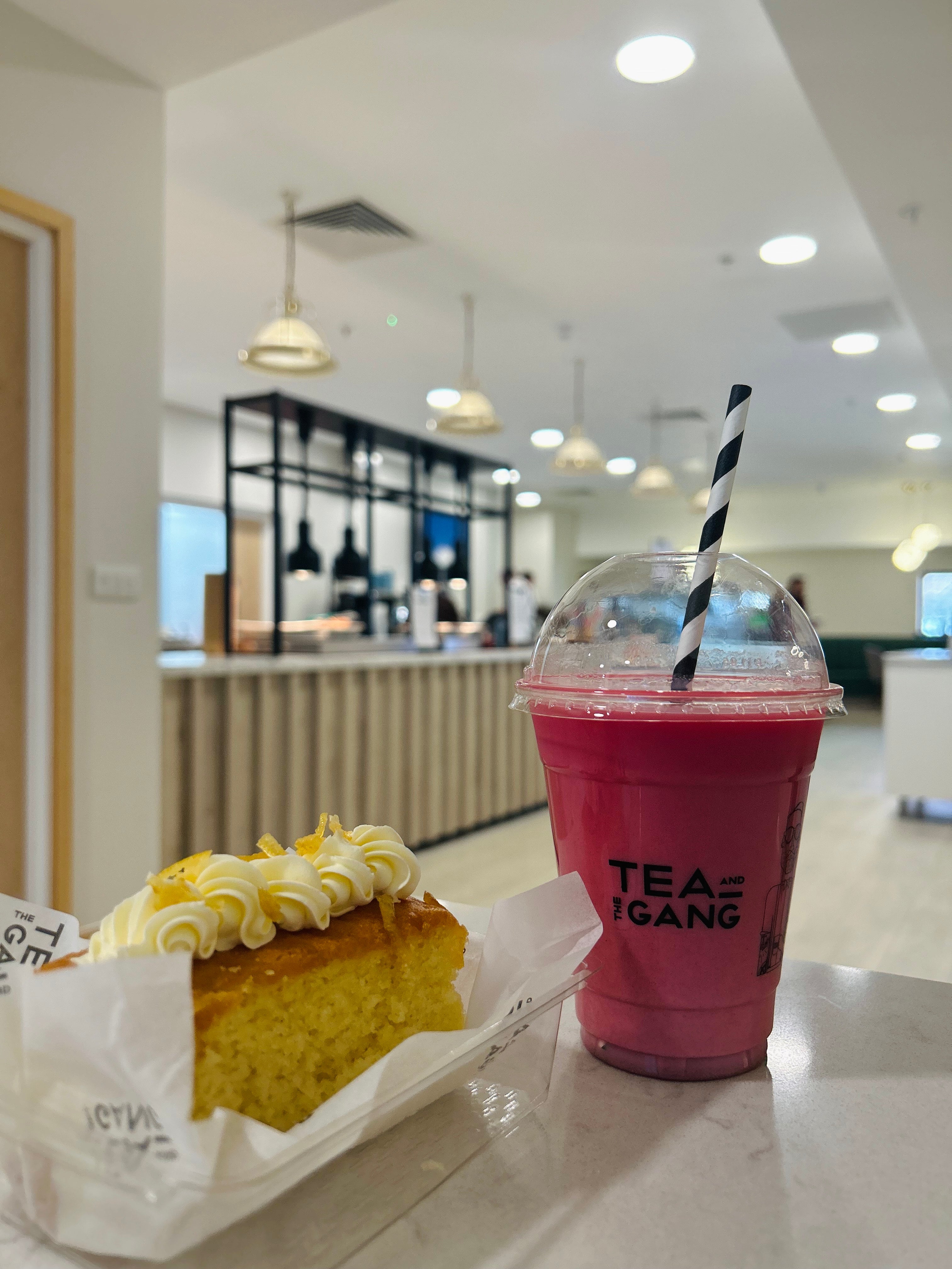 Indulge in an incredible variety of teas, including our unique "Tea and the Gang" blends. For coffee alternatives, treat yourself to our Matcha, Chai, Turmeric, or Beetroot lattes, or enjoy the rich flavours of our single-origin artisan coffee. Pair your drink with our tempting selection of freshly baked pastries, brownies & cakes or enjoy lunch with our freshly made sandwiches, toasted sandwiches, snacks and more.